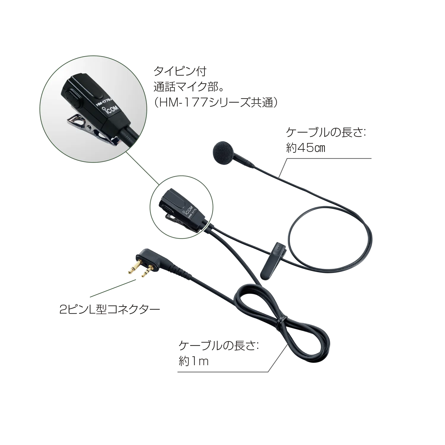 ICOM HM-177L 小型イヤホンマイクロホン 2ピンL型コネクター