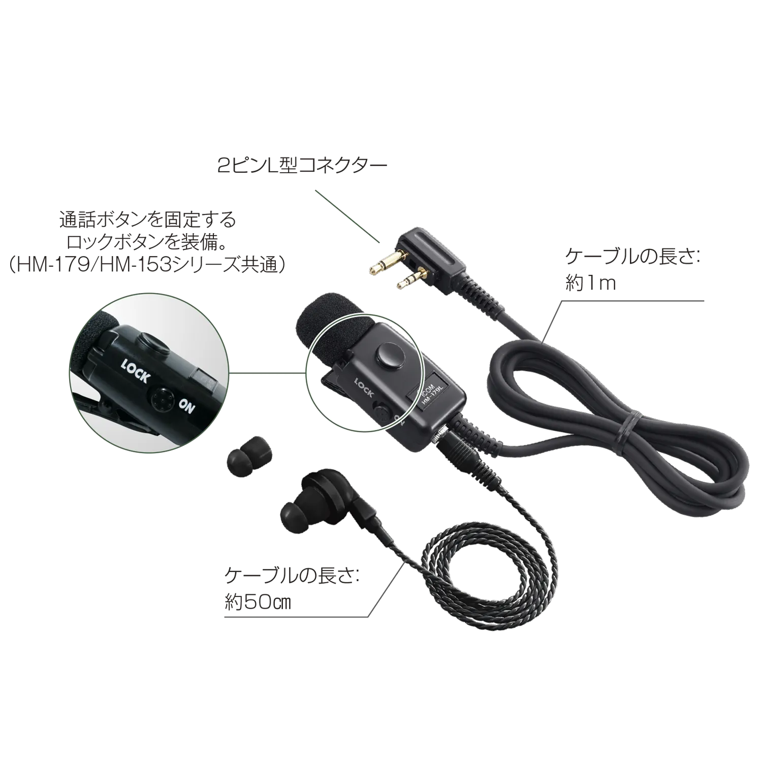| 商品説明 | メーカー :アイコム 型 番 :HM-179L コネクター形状:2ピンL型コネクター ケーブル長 :約1m 重 量 :約35g 適合機種 :IC-4110 / IC-4110D / ID-4188D ・マイク感度の3段階切替スイッチを装備 ・PTTスイッチを装備 ・イヤホン付属 |