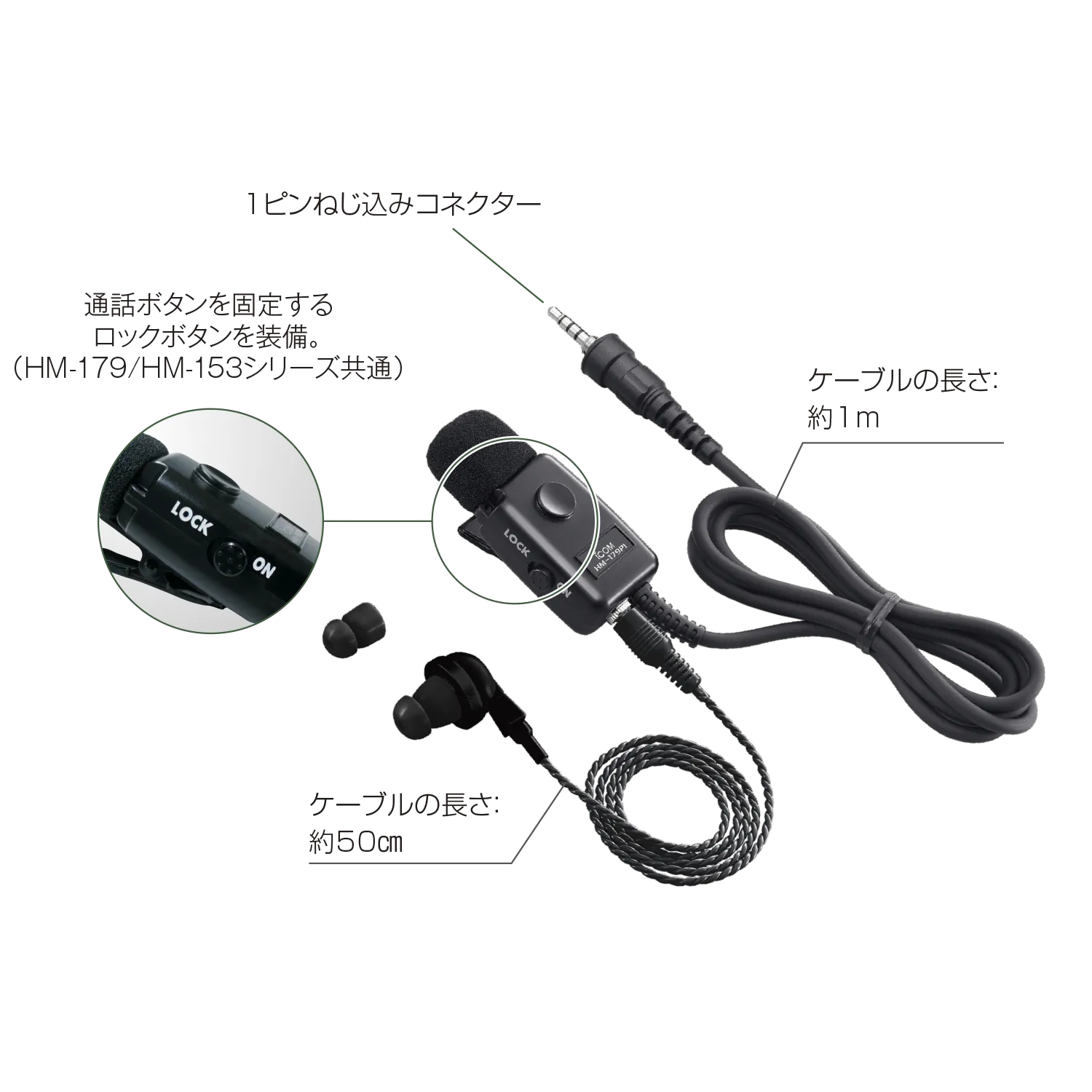 ICOM HM-179PI イヤホンマイクロホン 1ピンねじ込みコネクター
