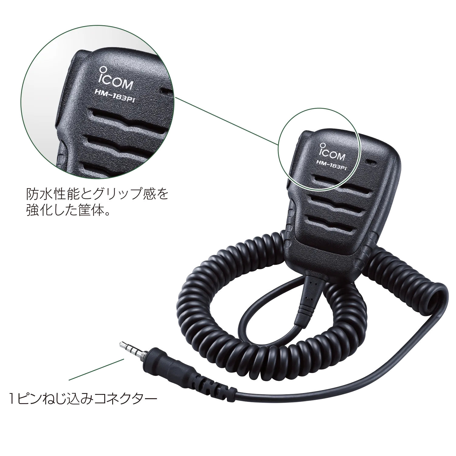 ICOM HM-183PI 防水形小型スピーカーマイク 1ピンねじ込みコネクター